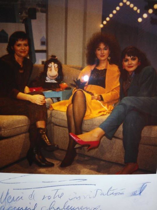 Auprès de Jano Bergeron, Florida, son personnage, et Sylvie Ledoux, co-animatrice.