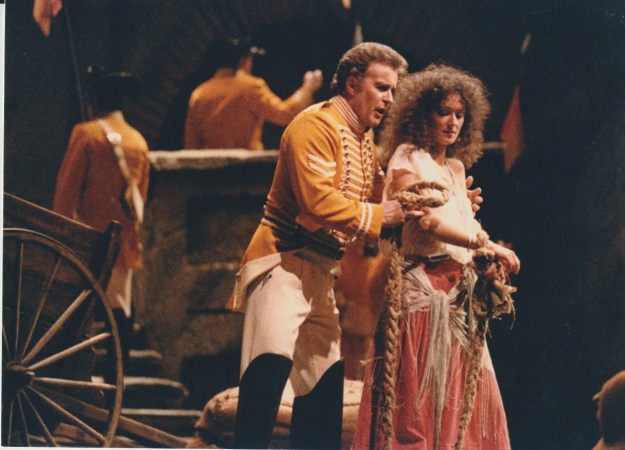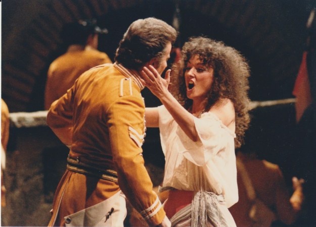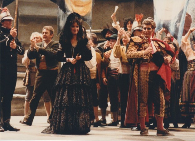 Dans ce genre de contexte où l’on nous place en compétition directe avec une autre collègue, il faut pouvoir être créative. Lors de la première, au premier acte, j’ai pu surprendre agréablement mon Don José, en l’occurence André Jobin*, ainsi que le metteur en scène Roland Laroche : nu pieds, mains ligotées derrière le dos, tout en chantant je m’approche de ce beau et charmant soldat qui avait la cuisse, disons, « invitante » et la lui caresse avec mon pied… André me sourit sans que ça ne paraisse trop, et Roland qui, à l’entracte, se précipite en courant dans ma loge pour me dire à quel point c’est une trouvaille extraordinaire!
