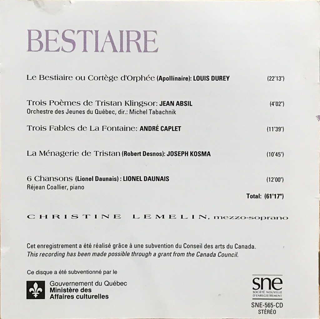 Une majeure partie de ces pièces furent l’objet d’un récital théâtralisé La Belle… et les bêtes, un zoopéra.