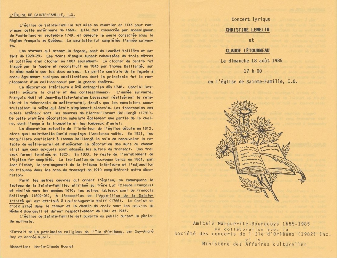 Étrangement, le programme, qui mentionne pourtant une « Amicale Marguerite-Bourgeois 1685-1985 », parle de l’église, toutefois sans mentionner le couvent…