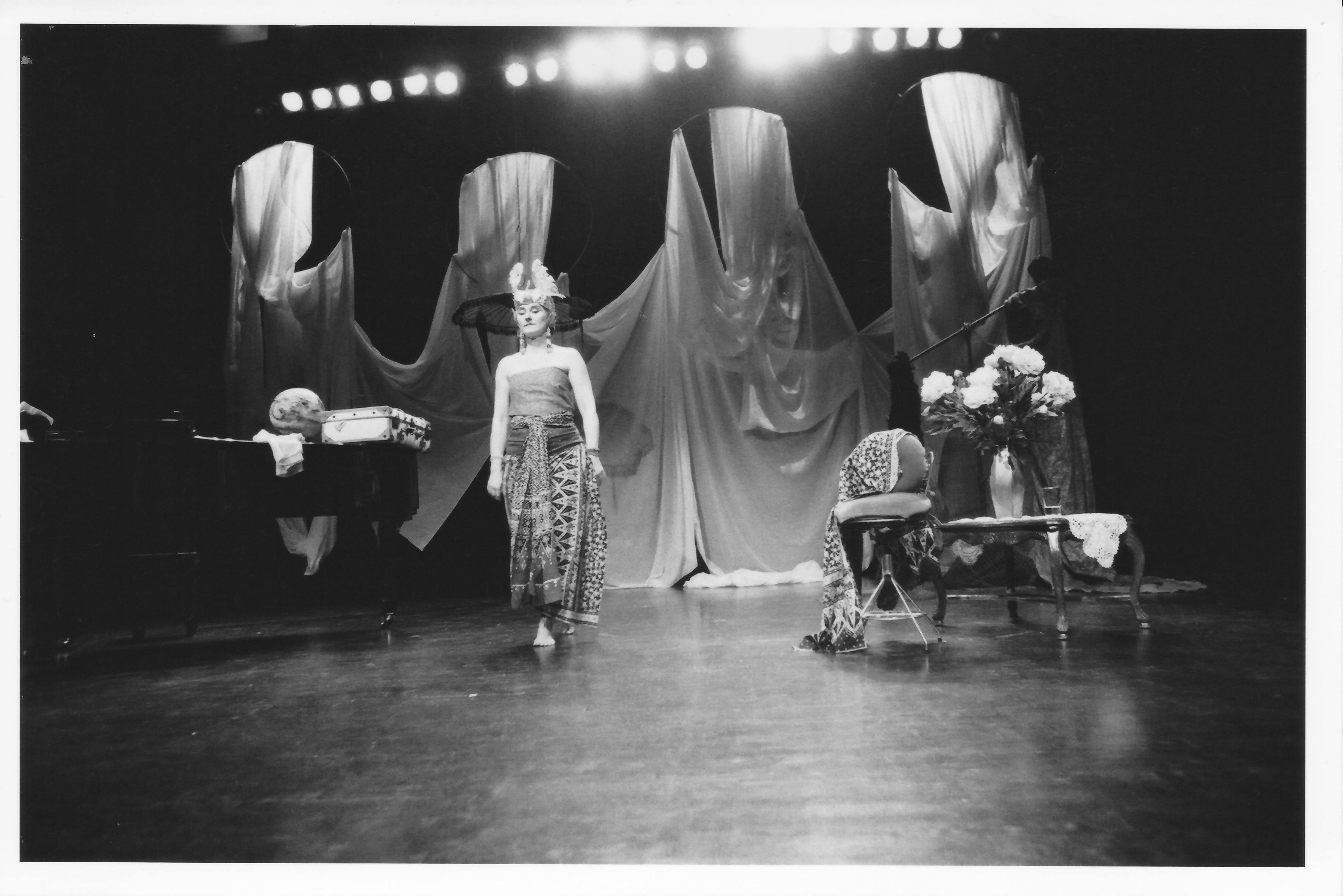 30 octobre 2000, Christine Lemelin/Parade – arborant ici un costume de danse javanaise, pendant le spectacle sur Éva Gauthier